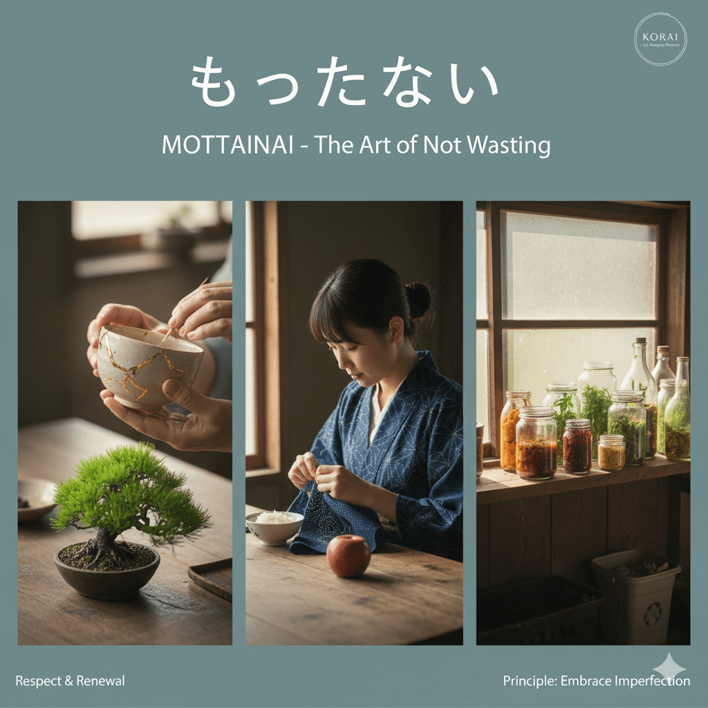 Mottainai es uno de los valores más profundos del Japón tradicional. Si algo se desperdicia, no es solo un objeto; es tiempo, recurso, energía y trabajo humano.